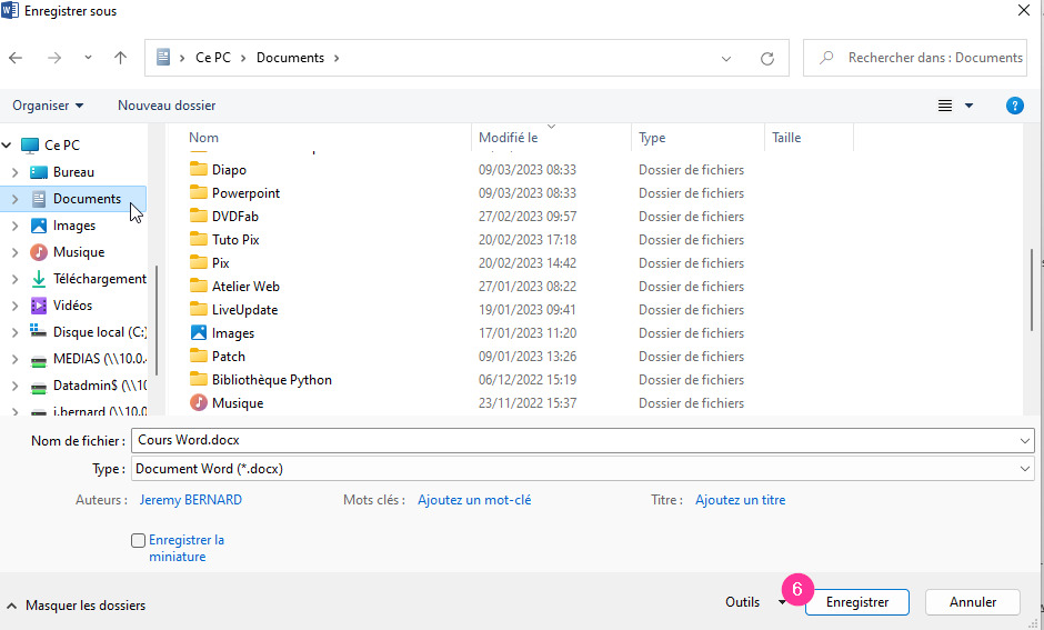 - Lorsque vous enregistrez les modifications sur le document déjà enregistré